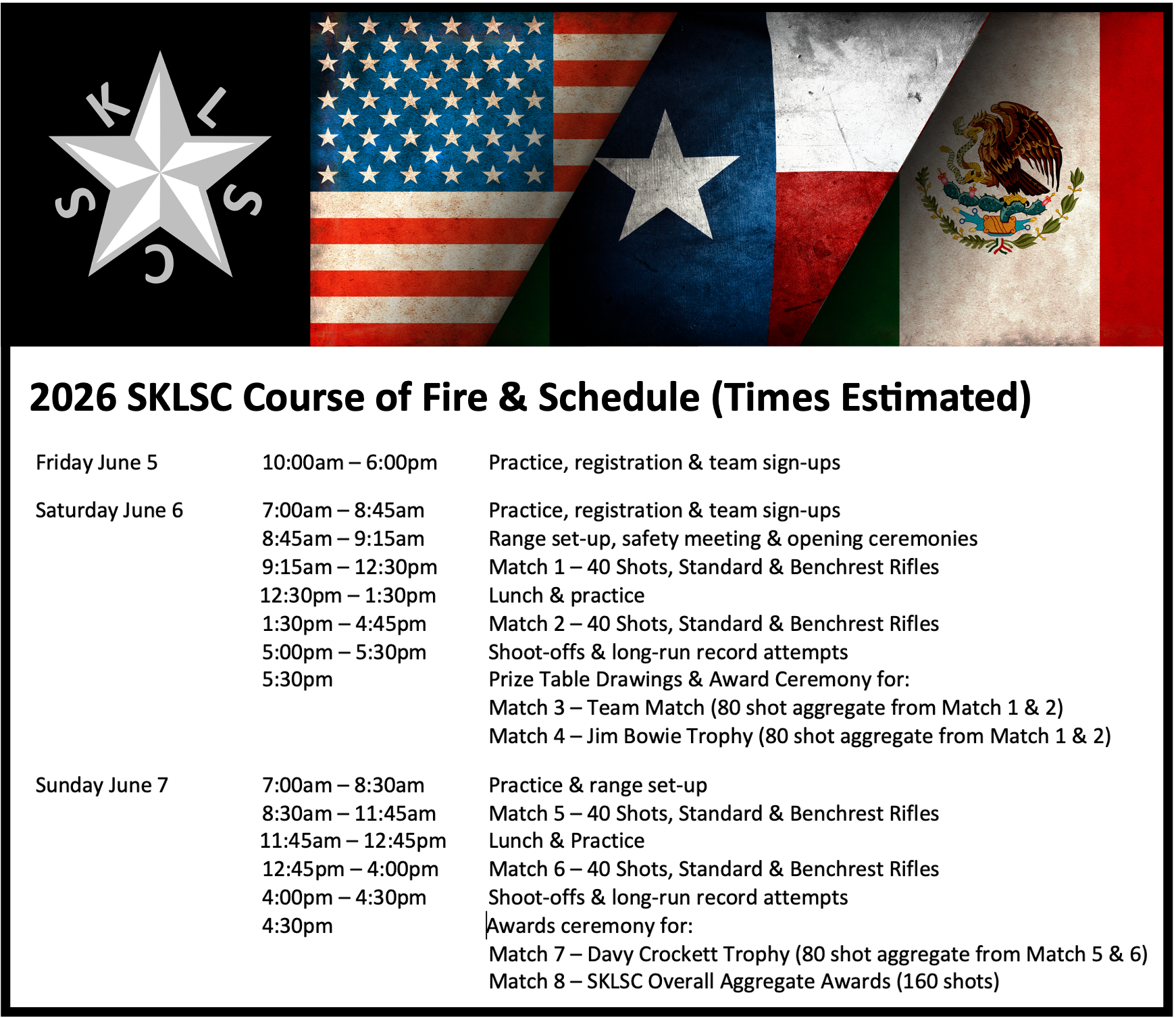 El SKLSC consiste en un total de 160 disparos Rifle Estándar de Silueta con Cañón Pequeño (Registrado en la NRA), que se celebra simultáneamente con un Rifle de Silueta con Barbacoa Smallbore (dos partidos de 40 disparos al día).